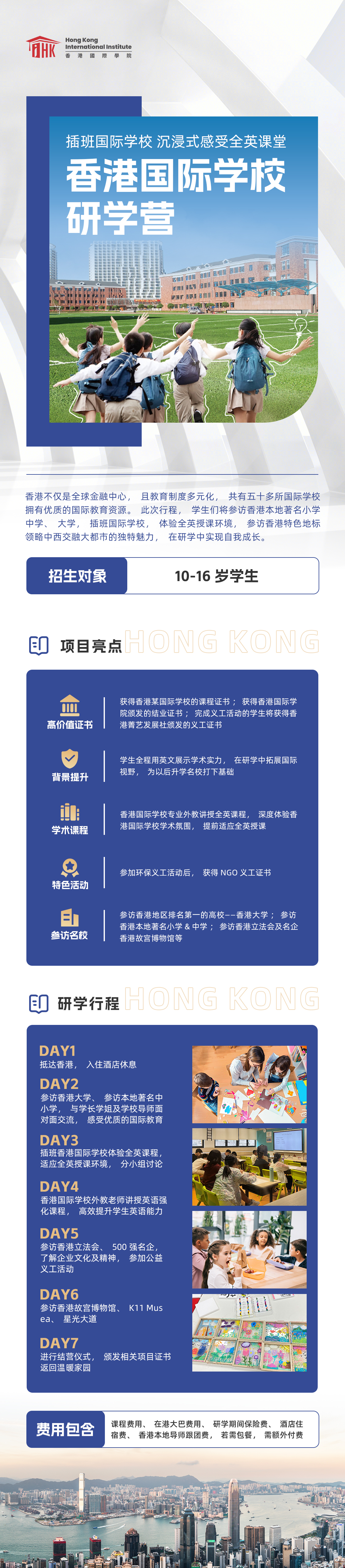 ★費用包含:課程注冊費、講師及評審費用、場地及設(shè)備租賃費、教材資料及證書制作費、旅游保險費、住宿,行政管理費、接送機費(香港國際機場、香港西九龍高鐵站接送服務(wù))